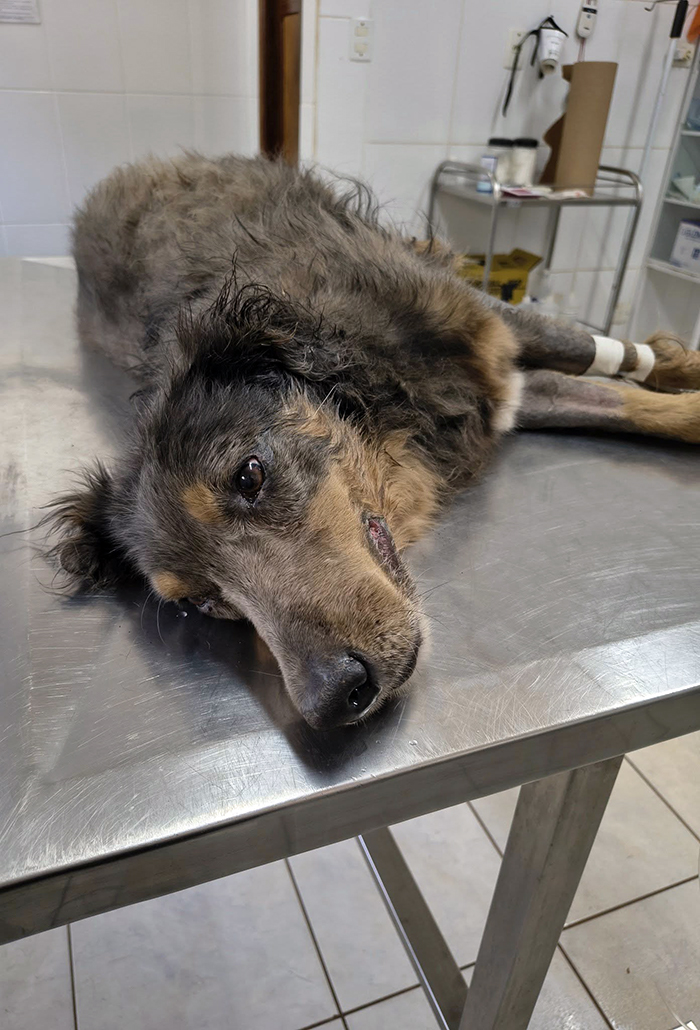 Na manhã seguinte, por acaso da sorte a professora Priscila encontrou o cão caído próximo da sua.