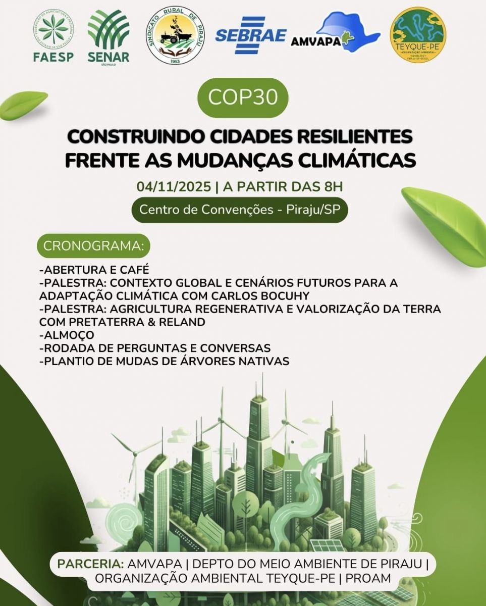 No dia 4 de novembro de 2025, o Centro de Convenções Richardson Louzada, em Piraju, será palco do Fórum “Construindo Cidades Resilientes frente às Mudanças Climáticas”, um evento voltado à troca de experiências e à discussão de ações municipais para enfrentar o calor extremo e os desafios ambientais do chamado “novo normal”.