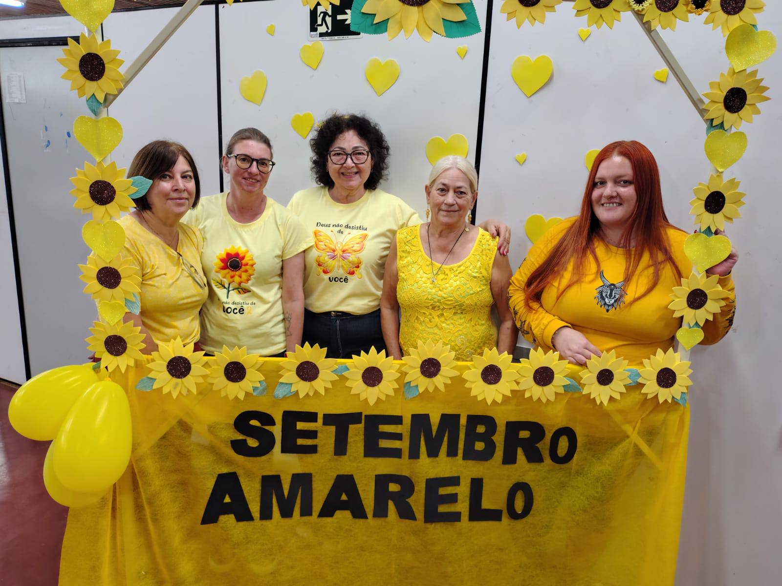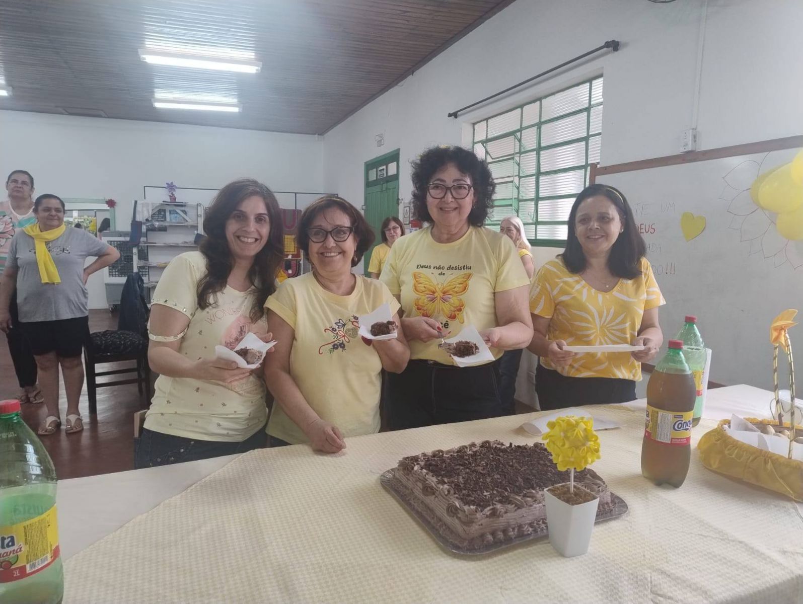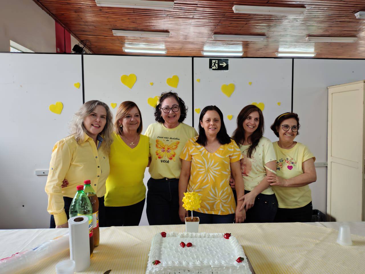 O Fundo Social de Piraju promoveu, na última quinta-feira, um café da tarde especial entre as participantes dos cursos, com sorteio de brindes, em alusão ao Setembro Amarelo, mês dedicado à valorização da vida e à prevenção do suicídio. O encontro reuniu a primeira-dama Carmem Lúcia, alunas, voluntárias, equipe do Fundo Social e contou também com a presença da diretora de Ação Social, Zoraide Berenhuel.