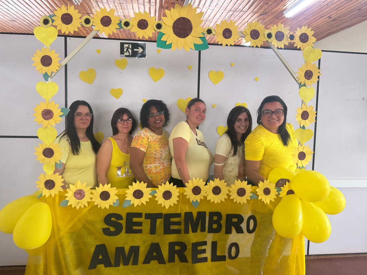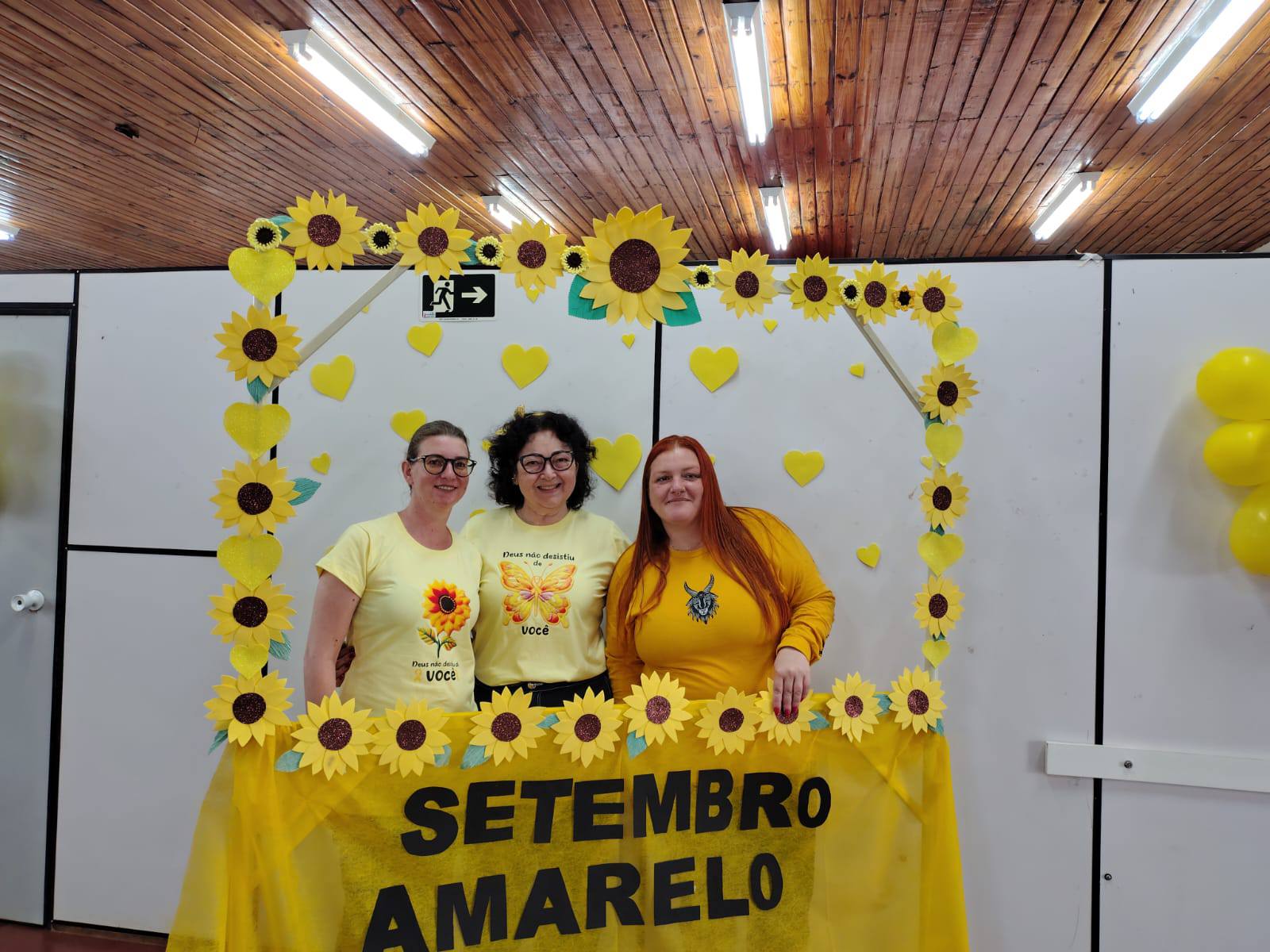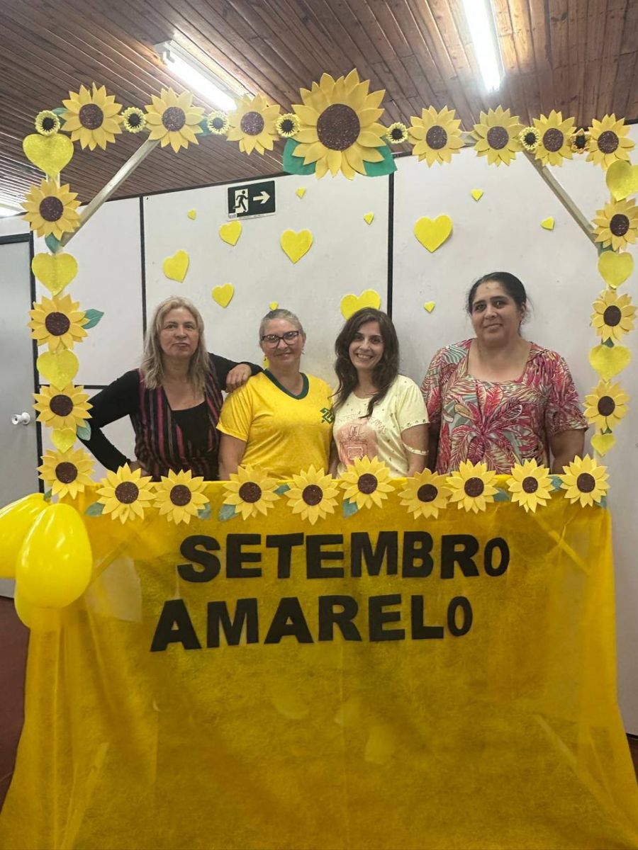 O Fundo Social de Piraju promoveu, na última quinta-feira, um café da tarde especial entre as participantes dos cursos, com sorteio de brindes, em alusão ao Setembro Amarelo, mês dedicado à valorização da vida e à prevenção do suicídio. O encontro reuniu a primeira-dama Carmem Lúcia, alunas, voluntárias, equipe do Fundo Social e contou também com a presença da diretora de Ação Social, Zoraide Berenhuel.
