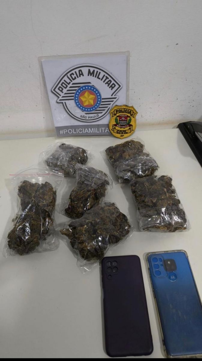 Durante a revista pessoal, foram localizadas seis porções de maconha, que totalizaram aproximadamente 495 gramas. Também foram apreendidos dois telefones celulares, que serão analisados para aprofundar as investigações e identificar possíveis conexões com outros envolvidos.