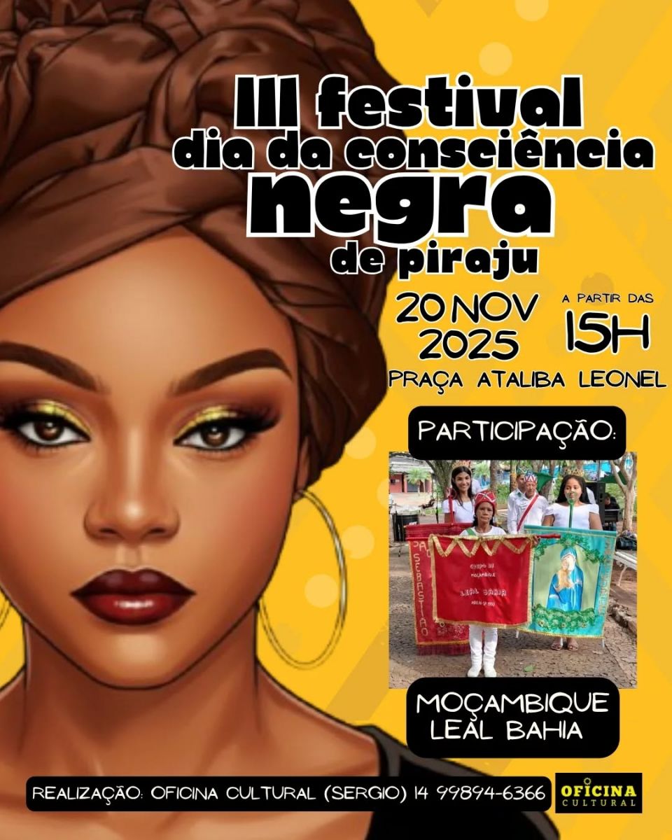 A programação inclui apresentações das crianças e jovens do Grupo de Capoeira Raça Negra e do Grupo de Moçambique Leal Bahia — patrimônio cultural imaterial de Piraju. Haverá também shows musicais de Paulo Simião e Fernando Uirapuru, que se apresenta ao lado de percussionistas em um espetáculo de encerramento inspirado na ancestralidade e na relação com a natureza.