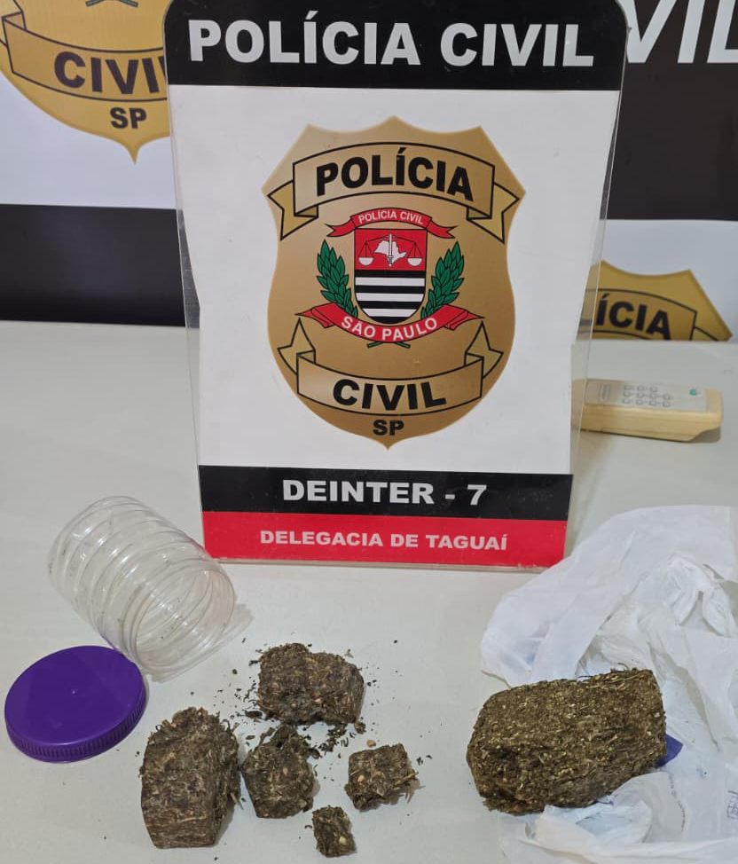 A vítima relatou que o suspeito mantinha entorpecentes escondidos em vasos e no quintal de casa, e que ele realizava vendas da droga em diferentes pontos do município. Após a abordagem, o homem foi preso em flagrante e levado à Delegacia de Polícia de Taguaí, onde teve a prisão ratificada pela autoridade policial.